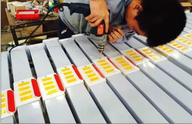 工人在給護欄打磨,確保護欄表面光滑、平整